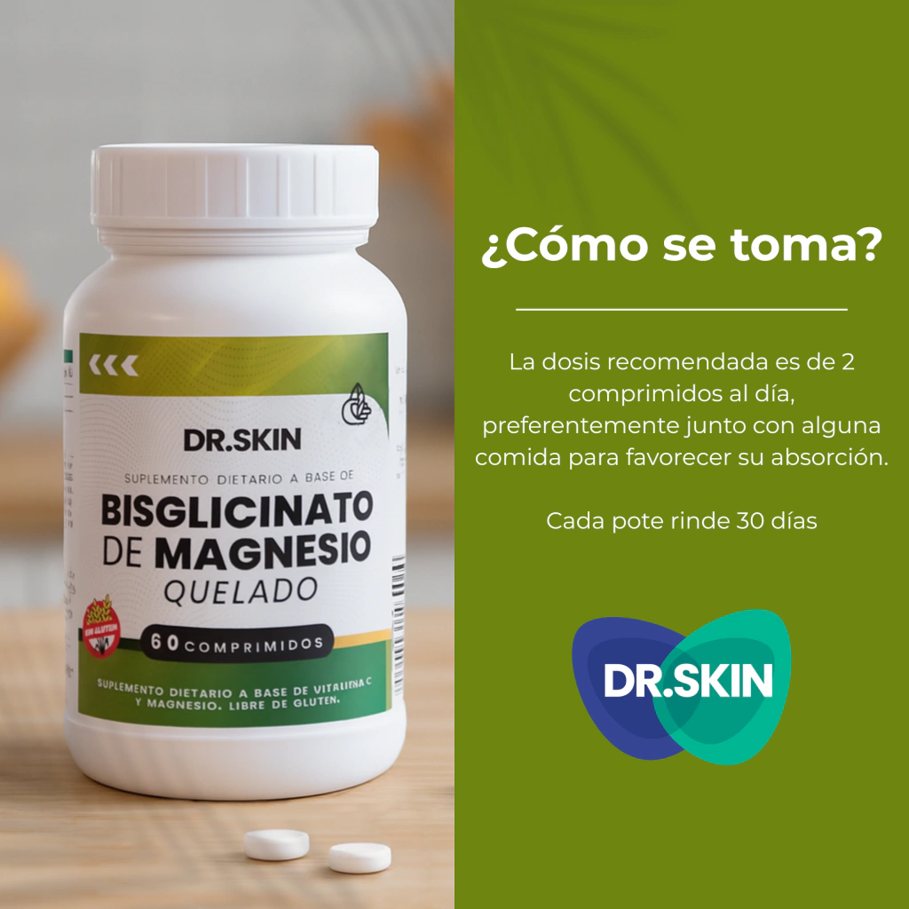Bisglicinato De Magnesio Quelado - Dr Skin - 60 Unidades Comprimidos - ¡Dormí mejor, bajá el estrés, sentite con más energía y olvidate de las contracturas y calambres!