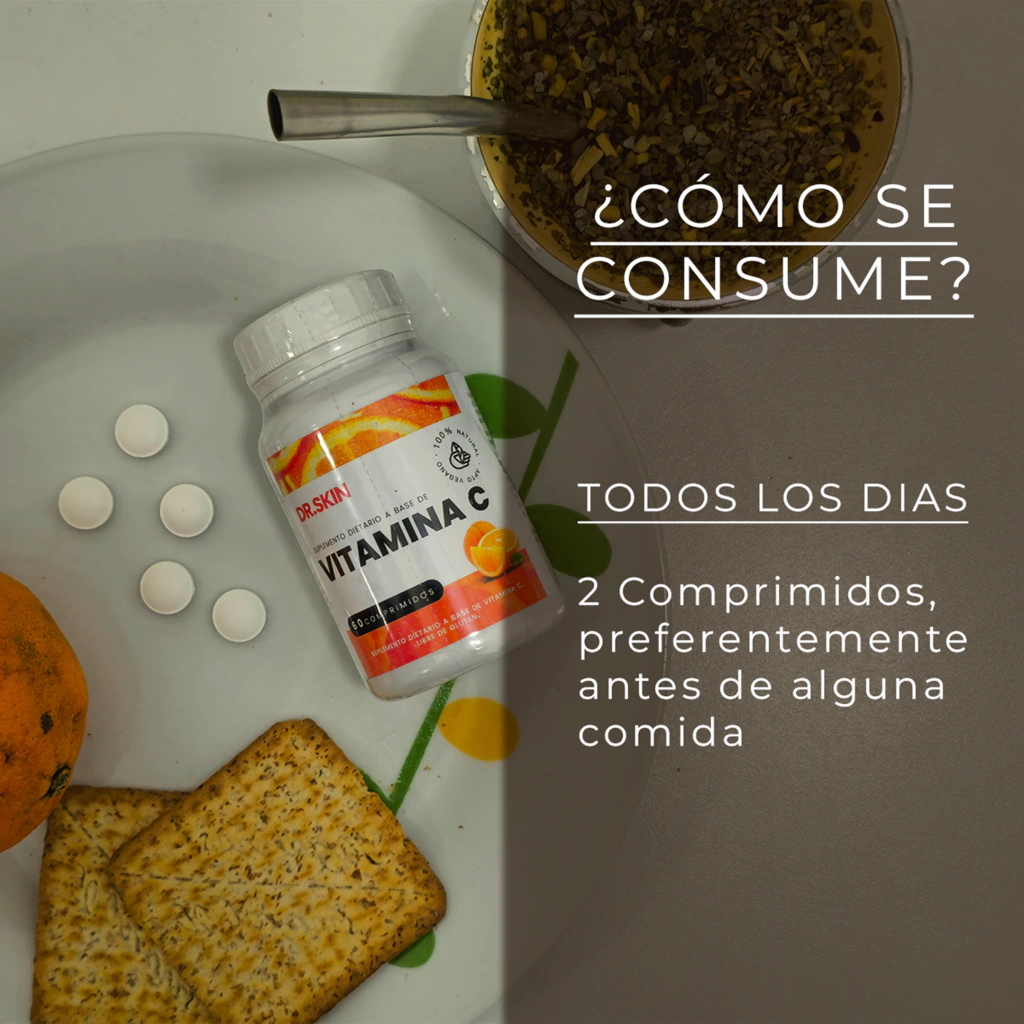 Cada comprimido contiene 500 mg de vitamina C pura, ideal para fortalecer tu sistema inmunológico, combatir el estrés oxidativo y proteger tu salud diaria. Cada pote contiene 60 comprimidos, que rinden para 1 mes de consumo.